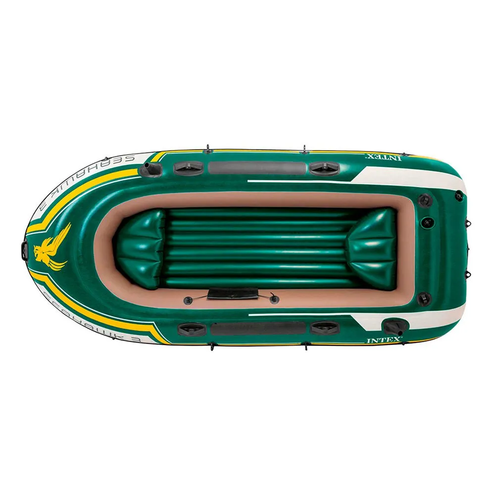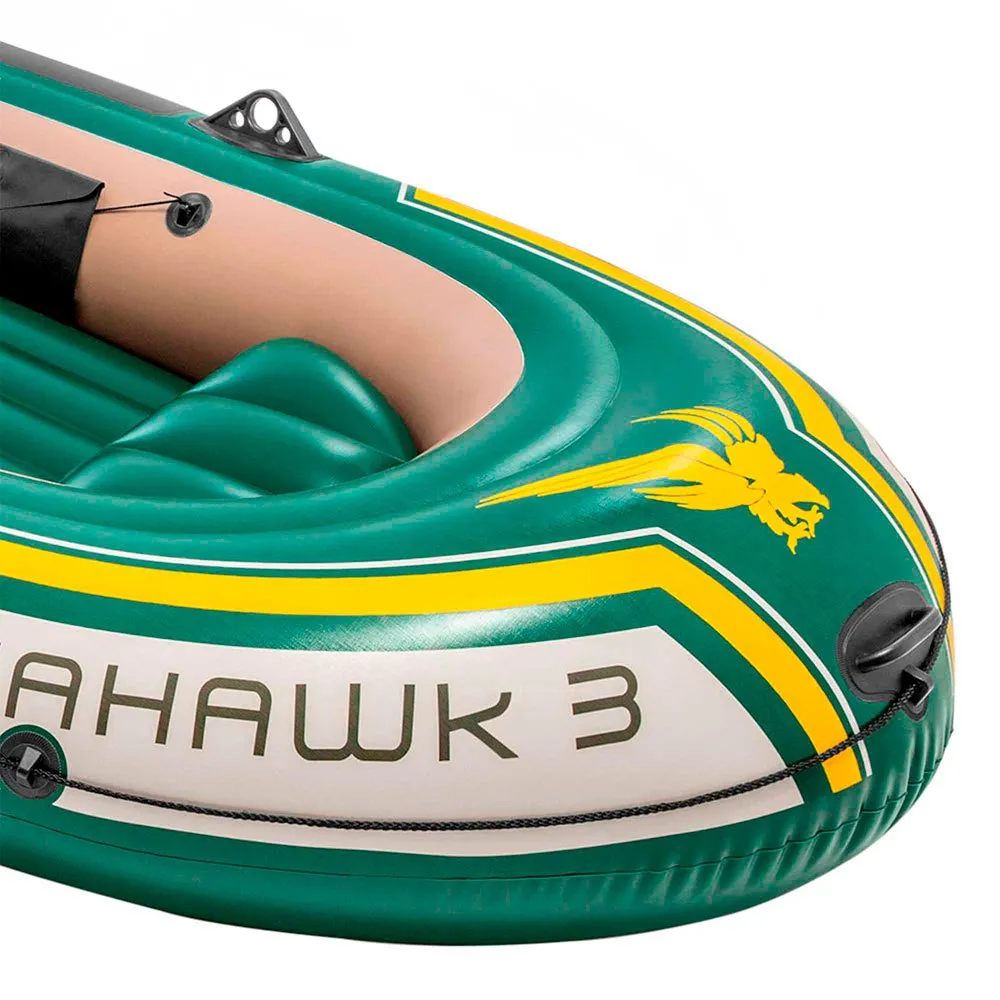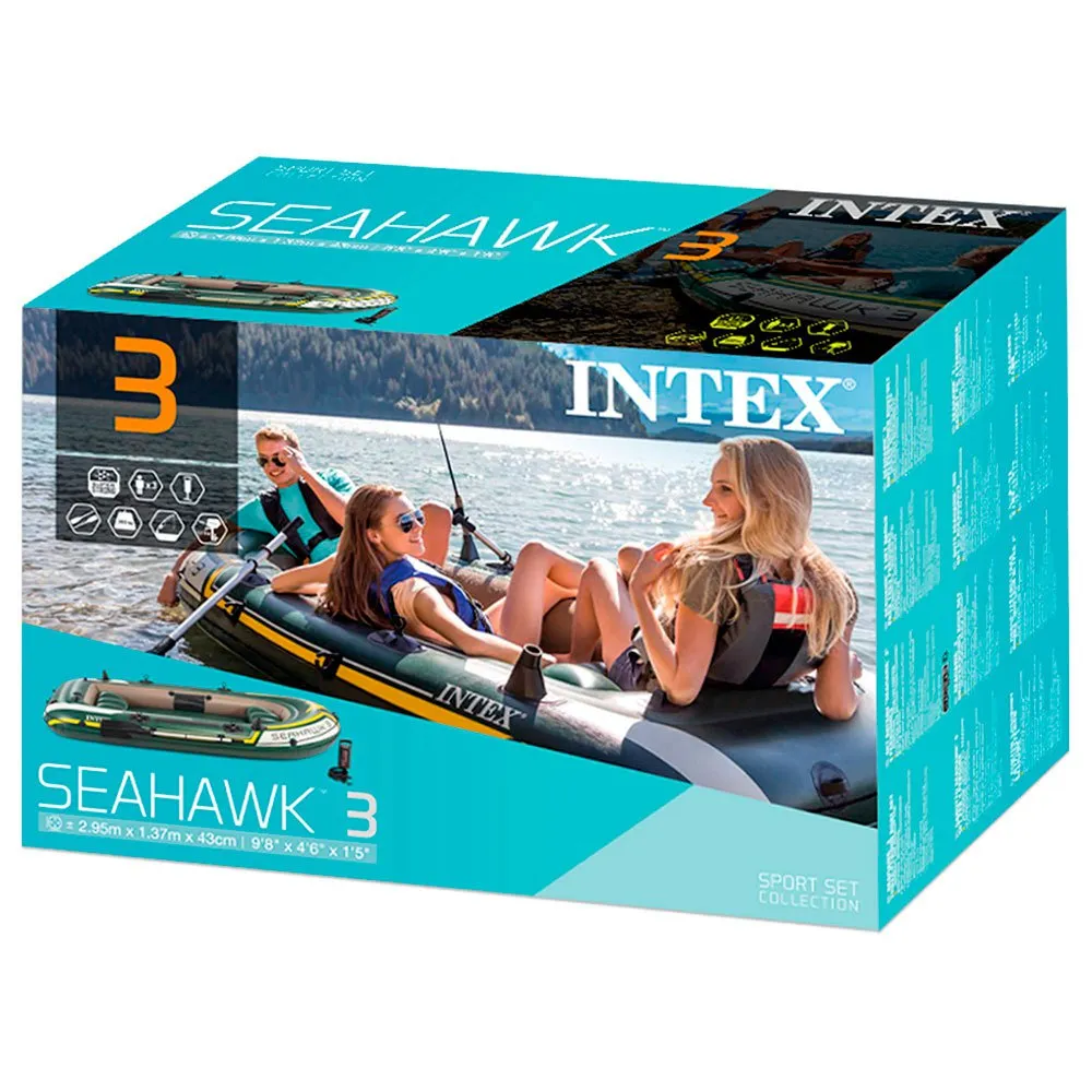 Che tu stia pescando, rilassandoti o remando sul lago, il gommone Seahawk 3 è l’ideale per rendere la tua esperienza in barca eccitante e divertente. Progettata con PVC resistente e resistente alle forature per comfort e durata, e un pavimento gonfiabile con travi a I per rigidità, la barca contiene tre camere d’aria tra cui una camera ausiliaria interna all’interno dello scafo principale per una maggiore sicurezza. Gonfiare o sgonfiare è un gioco da ragazzi con due valvole Boston a riempimento rapido. Pescare e rilassarsi non è mai stato così facile con i due portacanne e la custodia per attrezzi integrati. I raccordi per montaggio motore sono inclusi per la flessibilità di aggiunta della staffa del motore Intex e del motore per pesca alla traina. Per comodità, sono forniti una maniglia di presa a prua e una linea di presa completa, così come serrature di remi saldate, supporti di remi e un kit di riparazione. Il set di barche Seahawk 3 offre accessori aggiuntivi tra cui: due remi francesi da 48 pollici e una pompa ad alto rendimento Intex per un facile gonfiaggio e sgonfiaggio.